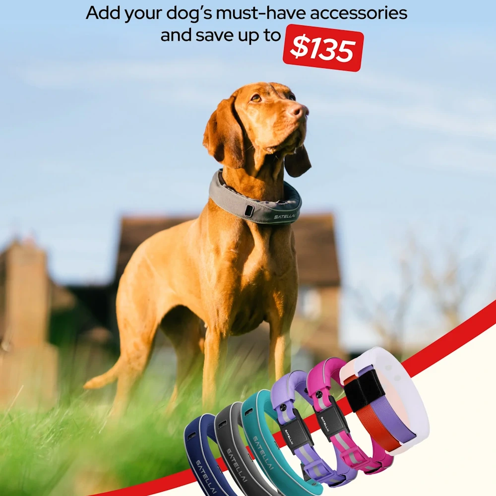 SATELLAI offers extra straps, spare chargers, and multi-dog bundles (collars + beacons + plan). Bundles usually save a bit per unit and simplify multi-dog ownership.